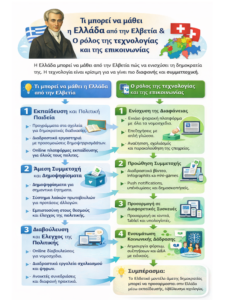- Πολιτική παιδεία και συμμετοχή: Η ελβετική κοινωνία είναι εξοικειωμένη με την άμεση συμμετοχή, ενώ στην Ελλάδα η πολιτική παιδεία παραμένει περιορισμένη, με αποτέλεσμα οι πολίτες να μην αξιοποιούν πλήρως τα θεσμικά εργαλεία άμεσης δημοκρατίας.