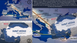 Ήδη από το 2005, ο Ιω. Μάζης στο βιβλίο «Γεωπολιτική προσέγγιση για ένα νέο Ελληνικό Αμυντικό Δόγμα» (εκδ. Παπαζήση) είχε κυκλοφορήσει το χάρτη με τον οριζόντιο και κάθετο αγγλοσαξονικό άξονα επιρροής. Ένα έτος αργότερα, δημοσιεύθηκε η θεωρία της «γαλάζιας πατρίδας» η οποία ουσιαστικά επιχειρούσε να πετύχει ό,τι δεν πέτυχε το Σχέδιο Ανάν.
