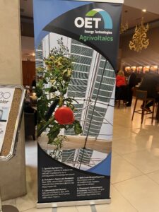 Ο κ Στέργιος Λογοθετίδης συνομιλώντας με τον υφυπουργό Αγροτικής Ανάπτυξης & Τροφίμων Διονύση Σταμενίτη, τον Βουλευτή Σερρών της ΝΔ Χρήστο Λεονταρίδη και τον Πρόεδρο του Επιμελητηρίου Σερρών Αθανάσιο Μαλλιαρά εξήγησε αναλυτικά τη χρήση και τα οφέλη των ημιδιάφανων Αγροβολταϊκών και αναφέρθηκε στα συγκριτικά πλεονεκτήματα της χρήσης φωτοβολταϊκών 3ης γενιάς, των ημιδιάφανων Φωτοβολταικών που κατασκευάζει η εταιρεία Organic Electronic Technologies (OET). Όπως χαρακτηριστικά είπε : «αυτά μπορούν να δώσουν μια βιώσιμη λύση σε παγκόσμιο επίπεδο, στο θέμα της αύξησης της παραγωγής κατά 30%, της παραγωγής Ενέργειας, και της ενεργειακής αυτονομίας σε καλλιέργειες τόσο μακριά από το δίκτυο, όσο και σε καλλιέργειες στο δίκτυο κάθε χρονική στιγμή».