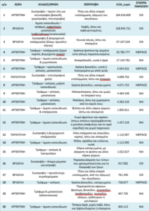 Ο παρακάτω πίνακας αποτυπώνει, από την υψηλότερη αξία σε ευρώ στην μικρότερη, τα είκοσι σημαντικότερα αγροδιατροφικά προϊόντα που εισάγουμε από τις χώρες της MERCOSUR.