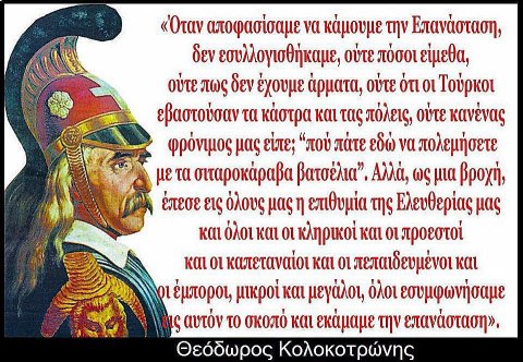 Οι ήρωες του ’21 ήταν άνθρωποι και είχαν τα πάθη τους. Έκαναν όμως την υπέρβαση και συντάραξαν ολόκληρη την υφήλιο με τα ανδραγαθήματά τους συναισθανόμενοι τον εθνικό τους ρόλο. Αυτόν που δεν μπορούν να συναισθανθούν τα μέλη της Επι(ν)τροπής. Αυτόν που δεν μπορεί επίσης να αντιληφθεί η κυβέρνηση η οποία οργανώνει τους εορτασμούς για την απαλλαγή από τον οθωμανικό – ισλαμικό ζυγό, την ίδια στιγμή που διευκολύνει μια ξεκάθαρη ισλαμική εισβολή με το πρόσχημα της μετανάστευσης και επιχαίρει για την αλλοίωση που θα επιφέρει αυτή στην εθνική μας ταυτότητα. Είναι αδιανόητο, σε μια εθνική γιορτή, να απαλείφονται εσκεμμένα τα εθνικά και θρησκευτικά μας σύμβολα για να μην ενοχληθούν όσοι βλέπουν το έθνος ως εμπόδιο στις ισοπεδωτικές διεθνιστικές τους ιδεοληψίες!