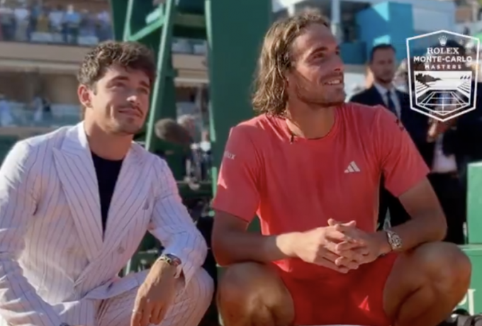 Ο Μονεγάσκος πιλότος της Φεράρι ήταν ένας εκ των υψηλών προσκεκλημένων στον τελικό Τσιτσιπάς-Ρουντ, και μετά το τέλος του αγώνα και την επικράτηση του Έλληνα τενίστα κατέβηκε στο γήπεδο.
