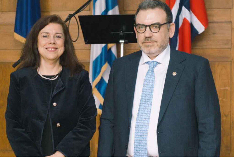 Ο Πρέσβης της Ελλάδος στο Όσλο, κ. Ευθύμιος Χαρλαύτης, με την Αναπληρώτρια Αρχής, κα Σοφία Μαρία Γιουρούκου (Φωτό: Αλέξανδρος Σταυράκης – Πρεσβεία της Ελλάδος στο Όσλο)
