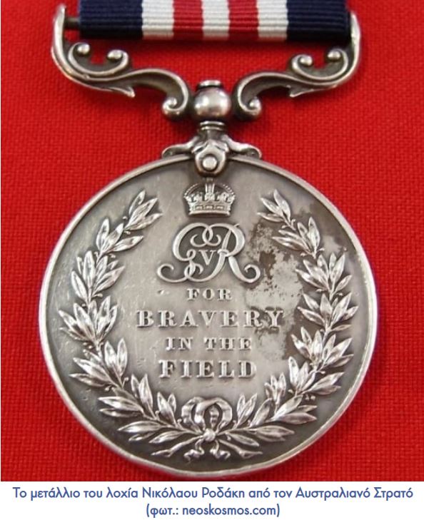 Για σήμερα, Παρασκευή 8 Δεκεμβρίου, έχουν προγραμματιστεί τα αποκαλυπτήρια της πλάκας του μνημείου του Ελληνοαυστραλού ήρωα του 1ου Παγκοσμίου Πολέμου, λοχία Νικολάου Ροδάκη στο κοιμητήριο Fawkner, στη Μελβούρνη.