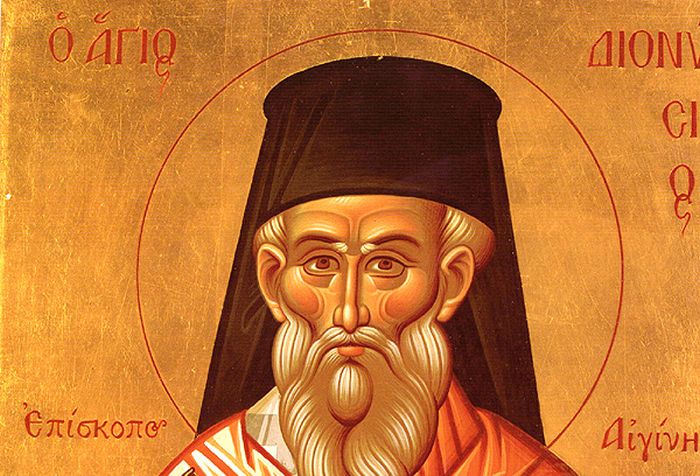 Ἂς τιμήσωμεν ὅλοι ὁμοῦ οἱ πιστοὶ τὸν Διονύσιον τὸν ἐκ Ζακύνθου καταγόμενον, τὸν ἐπίσκοπον τῆς Αἰγίνης, τὸν φύλακα τῆς ἱερᾶς Μονῆς τῶν Στροφαδων. Ἂς ψάλλωμεν πρὸς αὐτὸν εἰλικρινῶς· Σῷσον ἡμάς ἅγιε Διονύσιε, τους ἑορτάζοντας τὴν μνήμην σου δι’ ὕμνων και λιτανειῷν. Ἂς δοξάσωμεν καὶ τὸν δοξάσαντά σε εἰς ἡμας ἀκοίμητον πρεσβευτὴν καὶ μεσίτην πρὸς τὸν Θεόν. (Τα απολυτίκια, εκδότης Ιωάννης Ν. Σιδέρης, 1908)