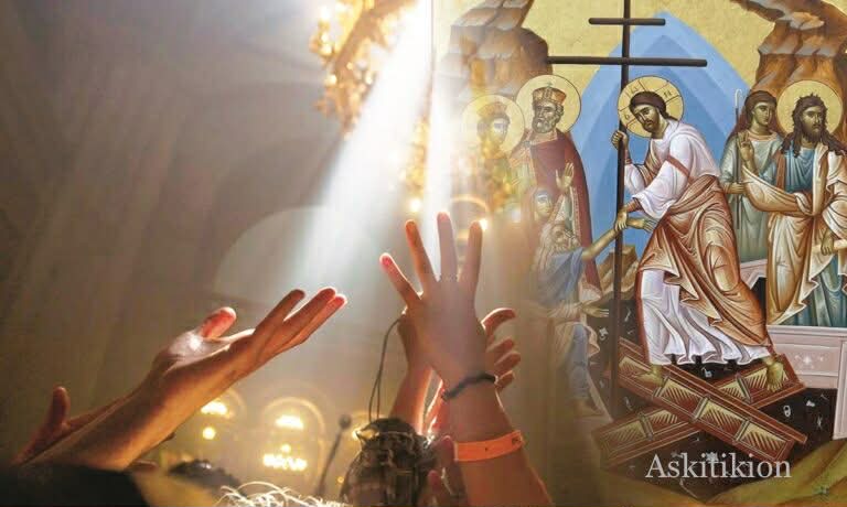 Νάσου κι ο παπάς, βγαίνει έξω από την Ωραία Πύλη με φύλλα δάφνης στα χέρια, και τα παιδιά του ιερού να κρατούν καλάθια ν έχει αρκετά να σκορπίσει στους πιστούς…ένα μεγάλο κι σπουδαίο μήνυμα Νίκης και Ευλογίας: καταπατήσαμε το θάνατο. «Χριστός Ανάστα, Ανάστα ο Θεός» Και σαν χτυπήσουν οι καμπάνες τα μεσάνυχτα του Μεγάλου Σαββάτου στις δώδεκα, το πένθιμο μαύρο αλλάζει κι γίνεται ένα χαρμόσυνο ολόλευκο.