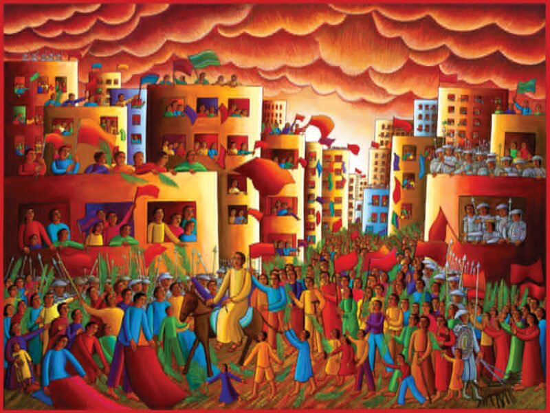 Από τη Δυτική πύλη μπήκε ο βασιλιάς της πόλης, καβάλα πάνω σε ένα πολεμικό άτι και συνοδευόμενος από στρατιώτες που κρατούσαν όπλα. Ασχέτως αν αυτή η εικόνα είναι πραγματική, δείχνει ανάγλυφα την αντίθεση της βασιλείας του Θεού και της βασιλείας του κόσμου. Αν θέλετε, χρησιμοποιώντας μια εικόνα που χρησιμοποιήθηκε πρόσφατα, έχουμε τον τρόπο του Ιησού και τον τρόπο του Τζέγκις Χαν. Και εμείς είμαστε αυτοί που θα επιλέξουμε ποιον θα υποδεχτούμε.