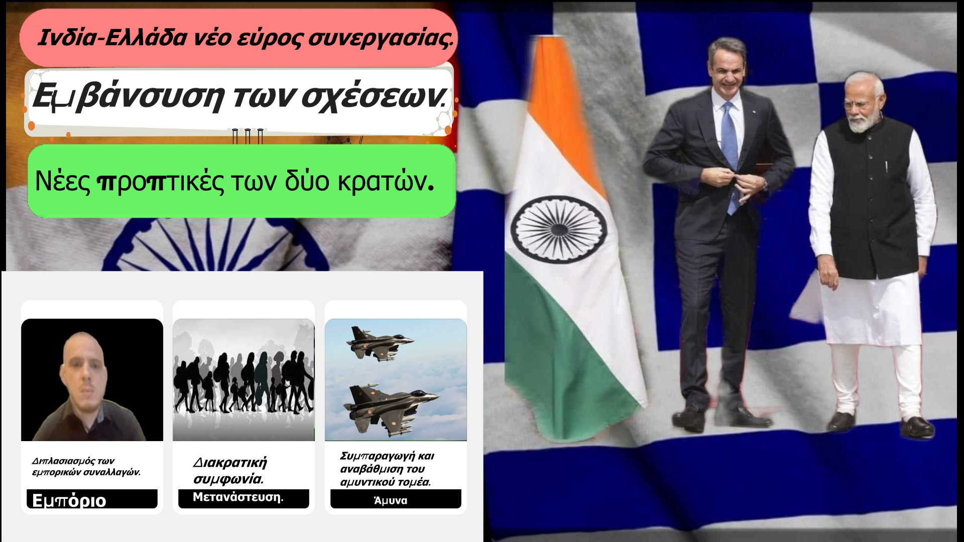 - Τον διάδρομο Ινδίας-Ελλάδος και κατ΄ επέκταση στην διασύνδεση της Ευρώπης όπου εκεί η Ελλάδα θα είναι η πύλη εισόδου της Ινδίας στην ευρωπαϊκή ήπειρο