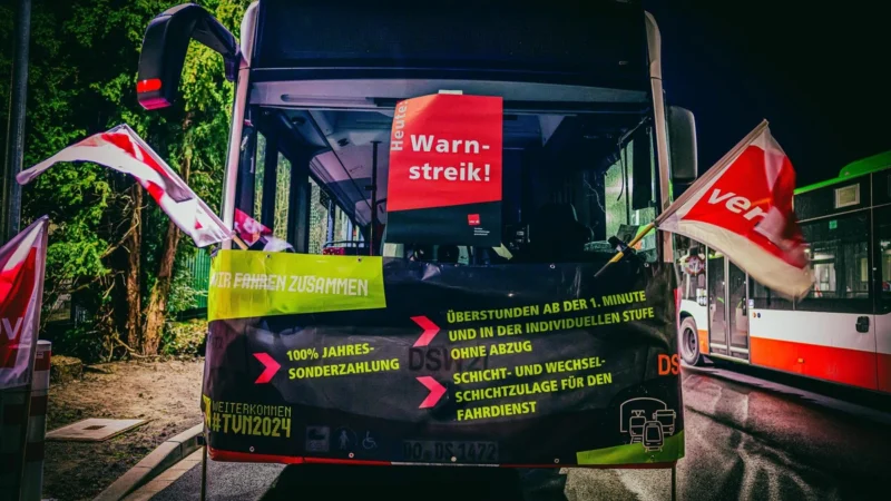 Σε αρκετές πόλεις της Βόρεια Ρηνανία‑Βεστφαλία τα μέσα μαζικής μεταφοράς θα παραμείνουν ακινητοποιημένα για μεγάλο μέρος της ημέρας. Οι εργαζόμενοι σε λεωφορεία και τραμ καλούνται να σταματήσουν την εργασία τους από τις πρώτες πρωινές ώρες έως και το τέλος της βάρδιας, προκαλώντας σοβαρά προβλήματα στις καθημερινές μετακινήσεις χιλιάδων πολιτών.