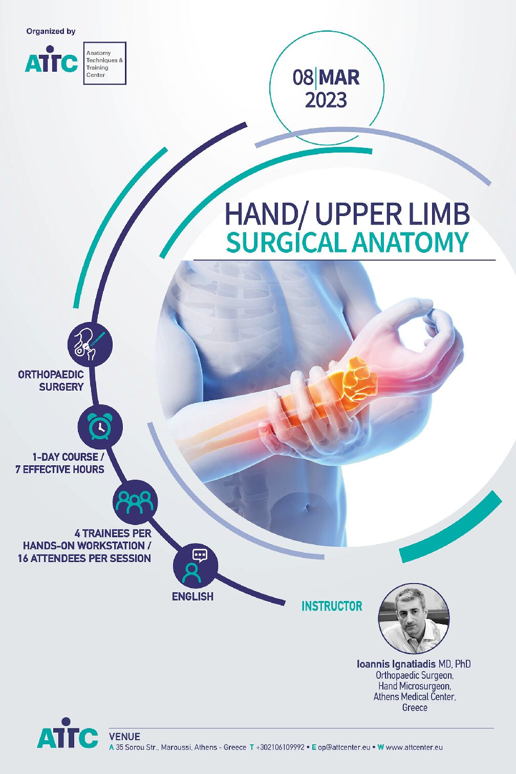 Ημερήσιο Σεμινάριο Πρακτικής Εκπαίδευσης Χειρουργικής Άνω Άκρου για Ορθοπαιδικούς ή Πλαστικούς (σε συντηρημένα παρασκευάσματα) θα πραγματοποιηθεί στις 8 Μαρτίου στο ATTC CENTER στο Μαρούσι.