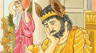 Ο μύθος: Ο Βασιλιάς της Φρυγίας Μίδας, αγαπούσε τόσο πολύ τα πλούτη που έφτασε να ζητήσει από τον Θεό Διόνυσο ό, τι αγγίζει να γίνεται χρυσός. Πλήρωσε, όμως, ακριβά το τίμημα την ημέρα που και την ίδια του την κόρη, μόλις την άγγιξε, την είδε να μετατρέπεται σε άγαλμα χρυσό.