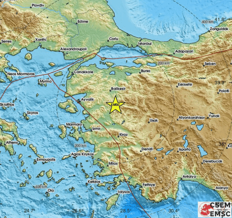 Σύμφωνα με τη Γεωλογική Υπηρεσία των ΗΠΑ (USGS), ο σεισμός είχε μέγεθος 5 βαθμών της κλίμακας Ρίχτερ και σημειώθηκε νότια της περιοχής Sındırgı, στην επαρχία Μπαλίκεσιρ, περίπου 130 χιλιόμετρα βορειοανατολικά της Σμύρνης.