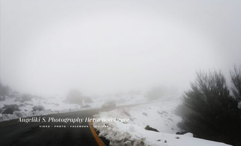 Ο δρόμος χανόταν μέσα στην ομίχλη σαν σκέψη που δεν τολμά να ολοκληρωθεί. Το κίτρινο της διαγράμμισης ξεθώριαζε σιγά σιγά, καταπίνοντας την απόσταση, σαν να μην υπήρχε ποτέ προορισμός μόνο μια πορεία. Το χιόνι, απλωμένο ακανόνιστα, κρατούσε τη γη σε μια παγωμένη ανάσα, σαν να περίμενε κάτι που δεν θα ερχόταν.
