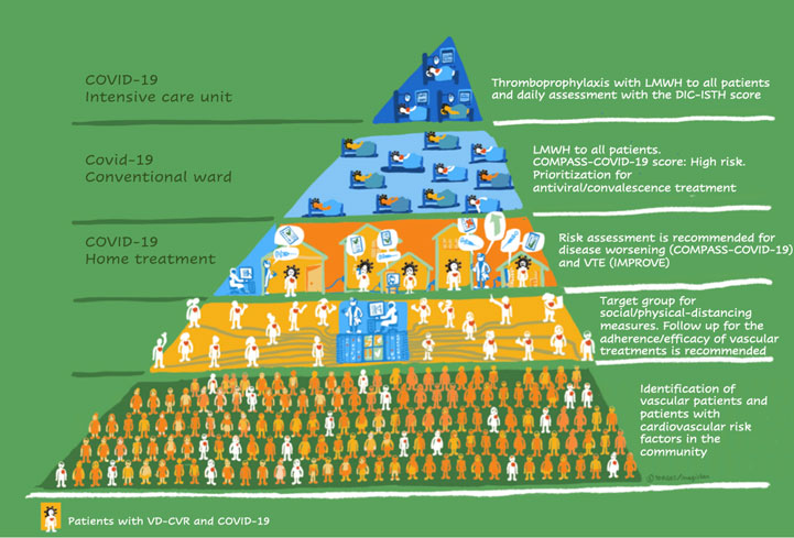 Το σχήμα που προτείνεται από τις διεθνείς κατευθυντήριες οδηγίες για την οργάνωση του δικτύου περίθαλψης για τους αγγειακούς ασθενείς με covid 19
