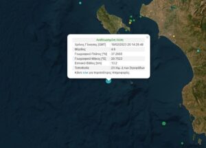 Σεισμική δόνηση 4,6 Ρίχτερ σημειώθηκε στο θαλάσσιο χώρο νότια της Ζακύνθου, σύμφωνα με την αναθεωρημένη λύση του Γεωδυναμικού Ινστιτούτου.