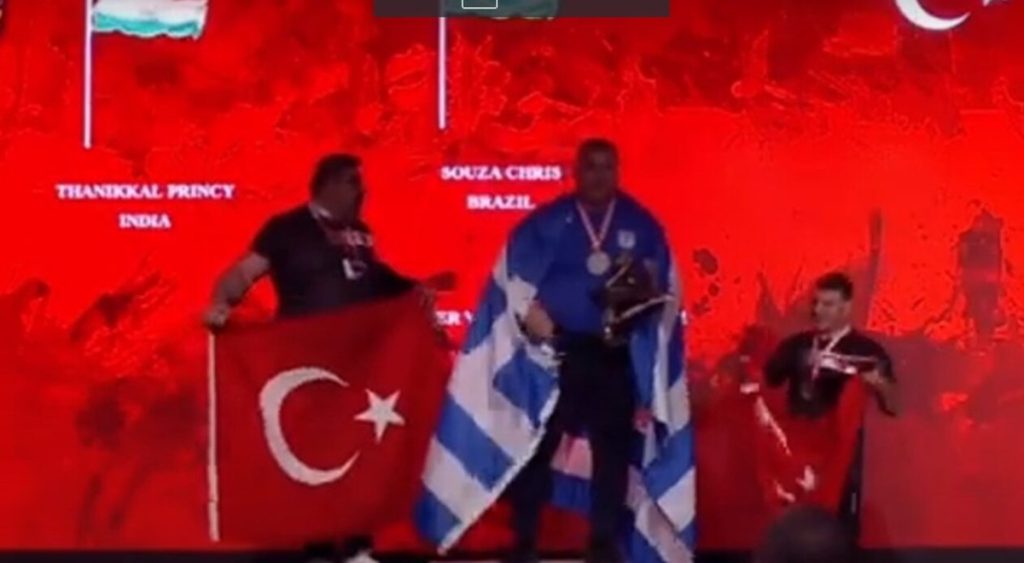 Όπως όμως θα δείτε και στο βίντεο, oι «οικοδεσπότες» έκαναν εφετζίδηκες κινήσεις για να φανεί η τουρκική σημαία περισσότερο από την ελληνική σε συνδυασμό με τον Εθνικό Ύμνο της Ελλάδας που… «κόπηκε» στη μέση, μόνο στο πνεύμα του σεβασμού και αθλητισμού δεν κινούνται.