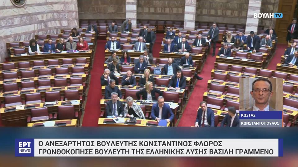 Σοβαρό επεισόδιο με πρωταγωνιστή τον πρώην βουλευτή των Σπαρτιατών Κωνσταντίνο Φλώρο Πρωτοφανές επεισόδιο σημειώθηκε πριν από λίγο στην Βουλή, με τον ανεξάρτητο βουλευτή και πρώην των «Σπαρτιατών» Κωνσταντίνο Φλώρο, να γρονθοκοπεί μέσα στην Ολομέλεια, τον βουλευτή της Ελληνικής Λύσης, Βασίλη Γραμμένο!