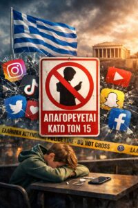 Η συζήτηση εστίασε σε μια μεγάλη αλλαγή που έρχεται στην Ελλάδα:από 1η Ιανουαρίου 2027 θα τεθεί σε εφαρμογή η απαγόρευση πρόσβασης σε μέσα κοινωνικής δικτύωσης για παιδιά κάτω των 15 ετών, όπως ανακοίνωσε ο Πρωθυπουργός Κυριάκος Μητσοτάκης.
