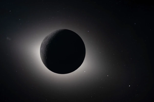 Από τα παράθυρα του Orion, η Σελήνη εμφανιζόταν ως μια σκοτεινή σφαίρα, πλαισιωμένη από το λαμπερό ηλιακό στέμμα, προσφέροντας ένα θέαμα που σπάνια καταγράφεται στην ιστορία των διαστημικών αποστολών.