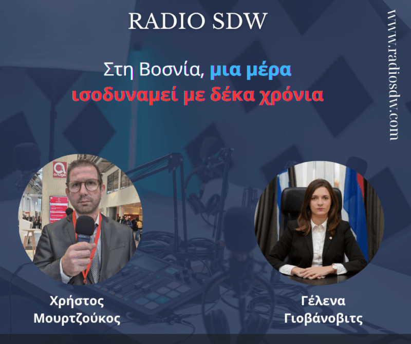 Στο ραδιόφωνο του Radio SDW, ο δημοσιογράφος Χρήστος Μουρτζούκος φιλοξένησε την κυρία Γέλενα Γιοβάνοβιτς, επικεφαλής της Αντιπροσωπίας της Σερβικής Δημοκρατίας της Βοσνίας στην Ελλάδα, για μια συζήτηση με επίκεντρο τις τελευταίες πολιτικές εξελίξεις στη Βοσνία-Ερζεγοβίνη και την τεράστια διπλωματική νίκη που πέτυχε η Σερβική Δημοκρατία με την άρση των κυρώσεων που είχαν επιβληθεί από το Υπουργείο Οικονομικών των Ηνωμένων Πολιτειών της Αμερικής.