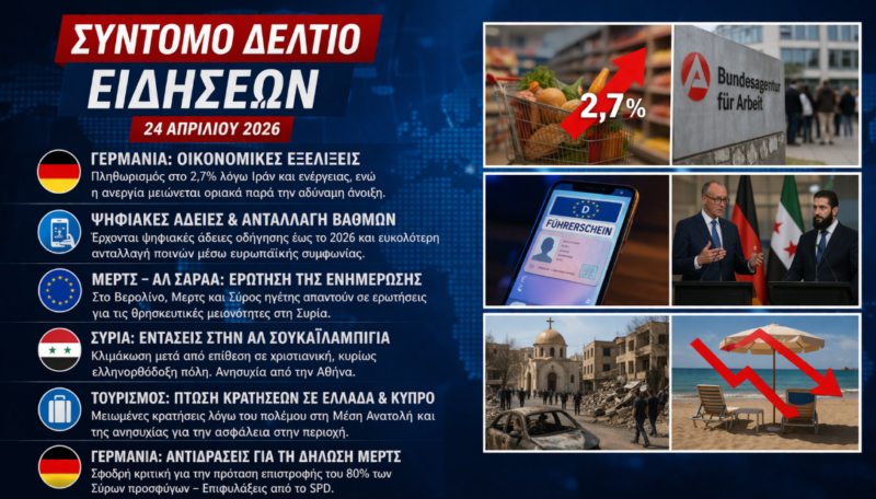 Η οικονομία της Γερμανία δέχεται πιέσεις, με τον πληθωρισμό να αυξάνεται στο 2,7% λόγω ενεργειακού κόστους και διεθνών εξελίξεων. Την ίδια στιγμή, η ανεργία μειώνεται οριακά, δείχνοντας αδυναμία ανάκαμψης της αγοράς εργασίας. Το οικονομικό περιβάλλον παραμένει αβέβαιο, επηρεάζοντας επιχειρήσεις και νοικοκυριά.